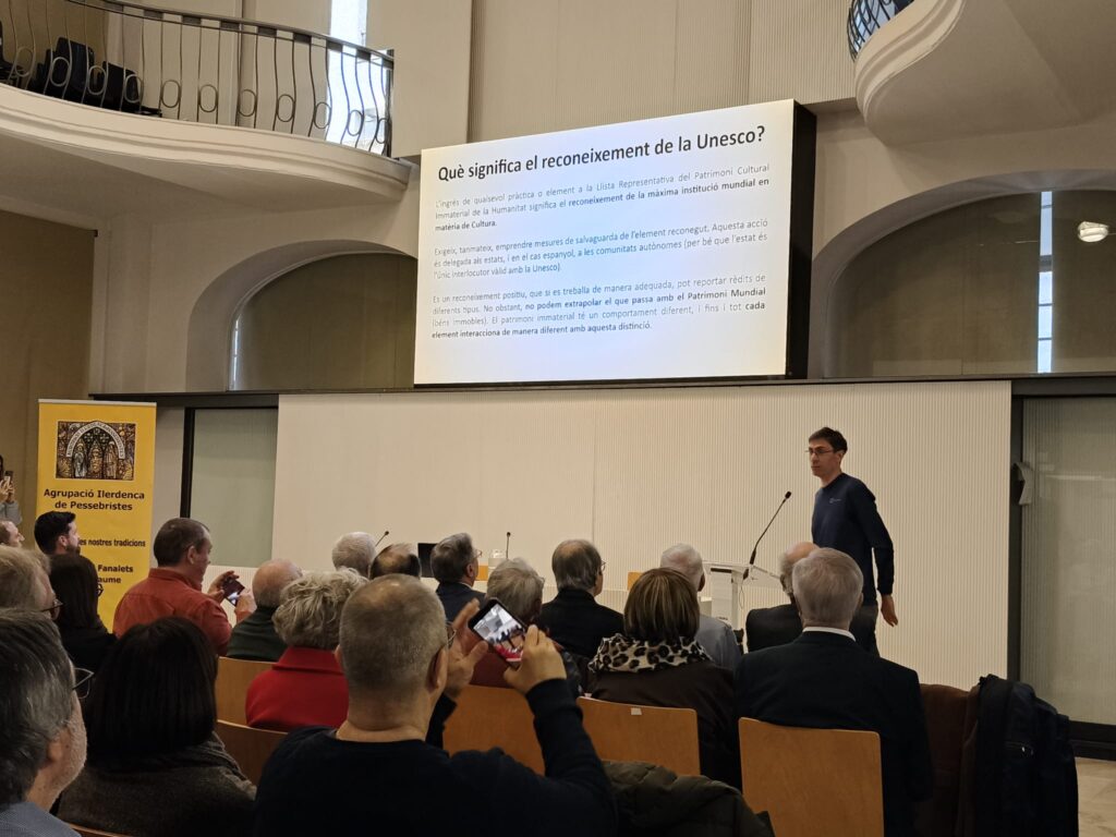 02/02/202601/02/2026 – Camí de la Unesco. Aquest diumenge 1 de febrer hem fet l’acte acadèmic en el marc de la celebració dels 40 anys de la Federació, a la Sala d’Actes Alfred Perenya de la regidoria de Cultura de l’Ajuntament de Lleida. Amb la sala plena, l’acte ha començat amb els parlaments de Jordi Curcó, president de l’Agrupació Ilerdenca de Pessebristes; Albert Català, en qualitat de president de la Un-Foe-Prae; i Ramon Albornà com a president de la Federació Catalana de Pessebristes. Tot seguit Roger Costa, antropòleg i consultor en patrimoni cultural, ha fet la conferència “El pessebrisme davant la UNESCO: els reptes d’esdevenir patrimoni cultural immaterial de la humanitat”.